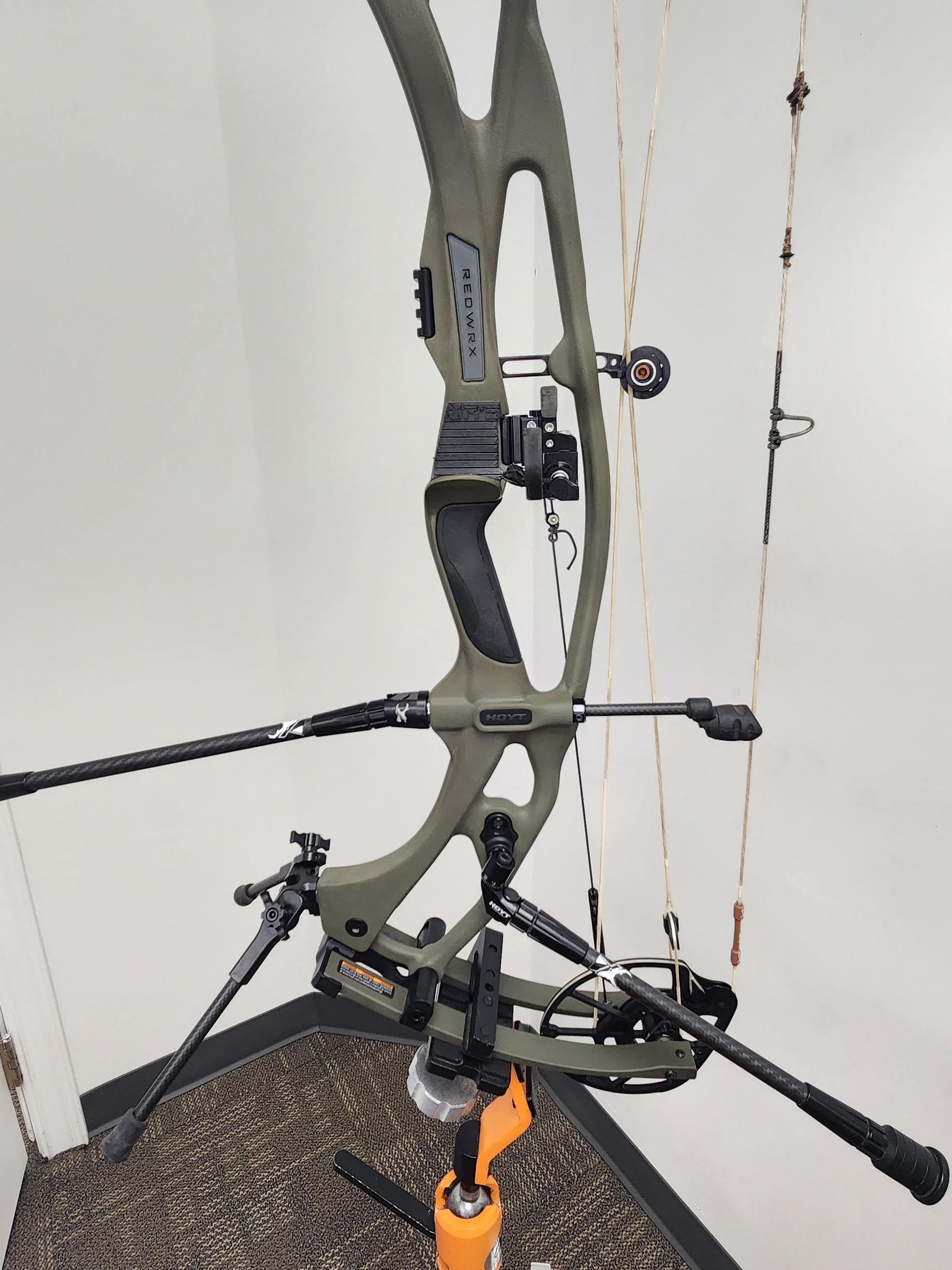 Lightly used Hoyt RX9 Ultra. 60-70 LB limbs, Currently set at 29.75" draw length and 73 LBS. It has #4 mods on it currently so it can adjust between 29.25"-30" in 1/4" increments. Wilderness color riser and limbs. Has Droptine Custom Strings on it with standard peep and Bomar nose button.