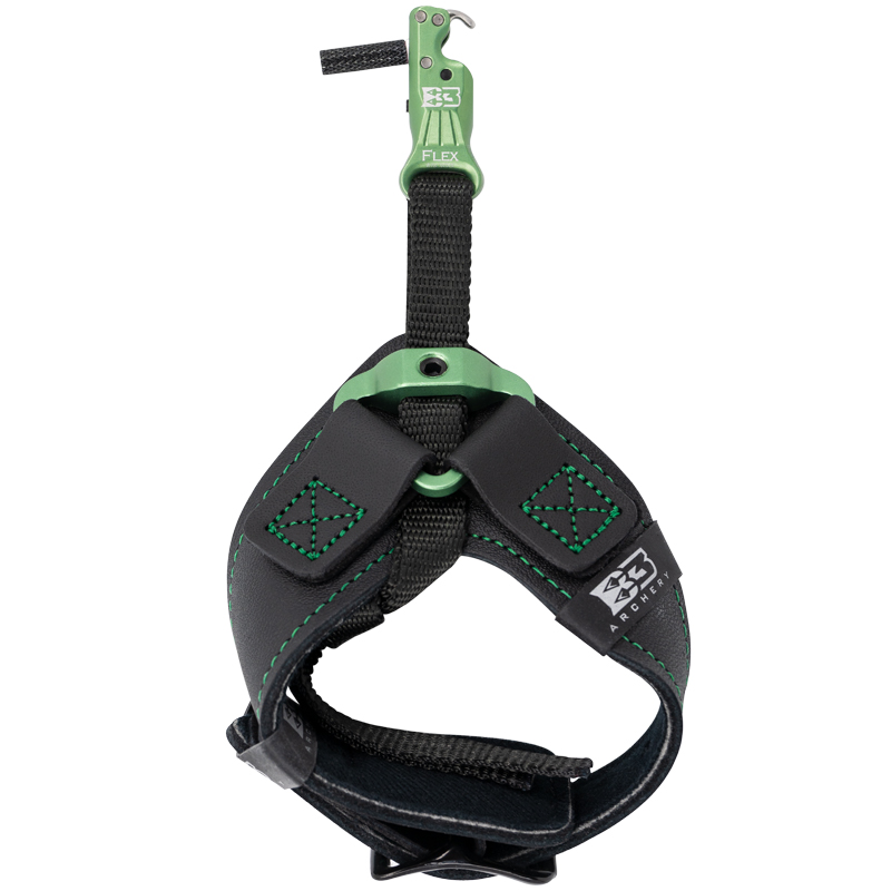 The Hawk Flex is a single sear release featuring a 440C stainless steel open hook. The Hawk Flex comes with an angled forward trigger and adjustable travel. It also features an interchangeable knurled post and spring-loaded return hook, so there’s no time wasted during your perfect shot. The Hawk Flex comes with the standard wrist strap, green head, green bracket and stitching. Our patented flex connector is the easiest system on the market today, with just one screw that moves in and out you can fit the release to any hand size. The Hawk is the best open hook single sear release in the world.